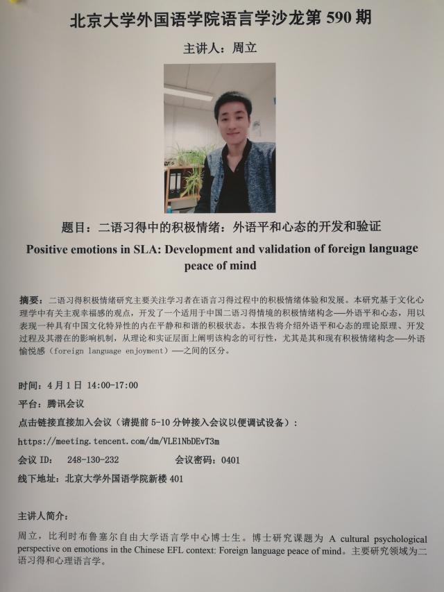 博鱼体育语言学沙龙第590期 二语习得中的积极情绪:外语平和心态的开发和验证
