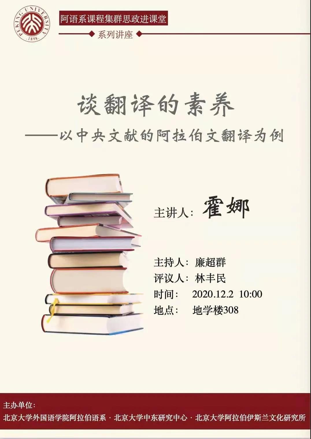北京大学阿拉伯语系思政进课堂讲座: 谈翻译的素养——以中央文献的阿拉伯文翻译为例
