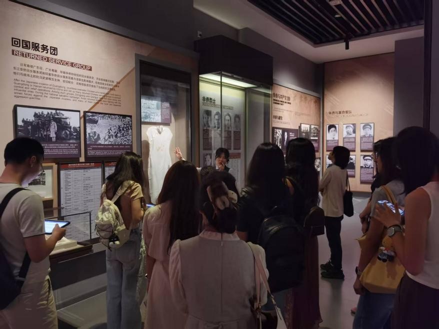 【图片:讲解员为师生讲解泰国华侨烈士文物】