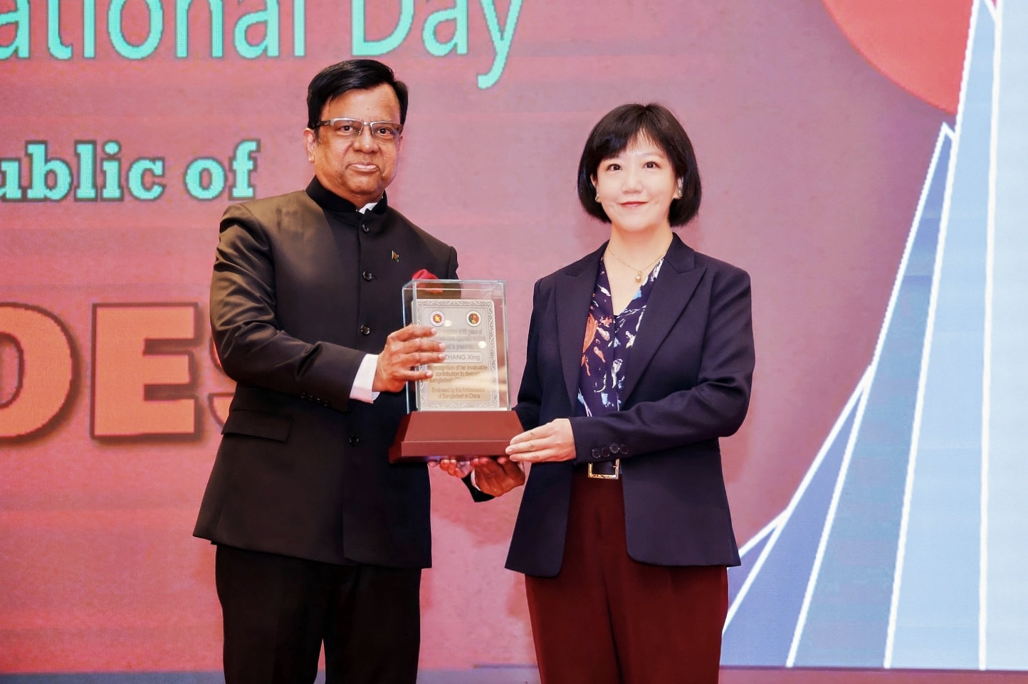在中国与孟加拉国建交50周年之际,孟加拉国驻华大使纳兹穆尔(Md Nazmul Islam)于2025年4月9日在京举办的孟加拉国独立54周年国庆招待会上,颁授孟中建交50周年贡献奖,表彰为孟中友好关系作出突出成绩的中方五位个人和一个集体。博鱼体育南亚学系南亚文化/孟加拉语教研室主任张幸副教授与四位中国前驻孟大使获得个人奖;中央广播电视总台孟加拉语部获得集体奖。