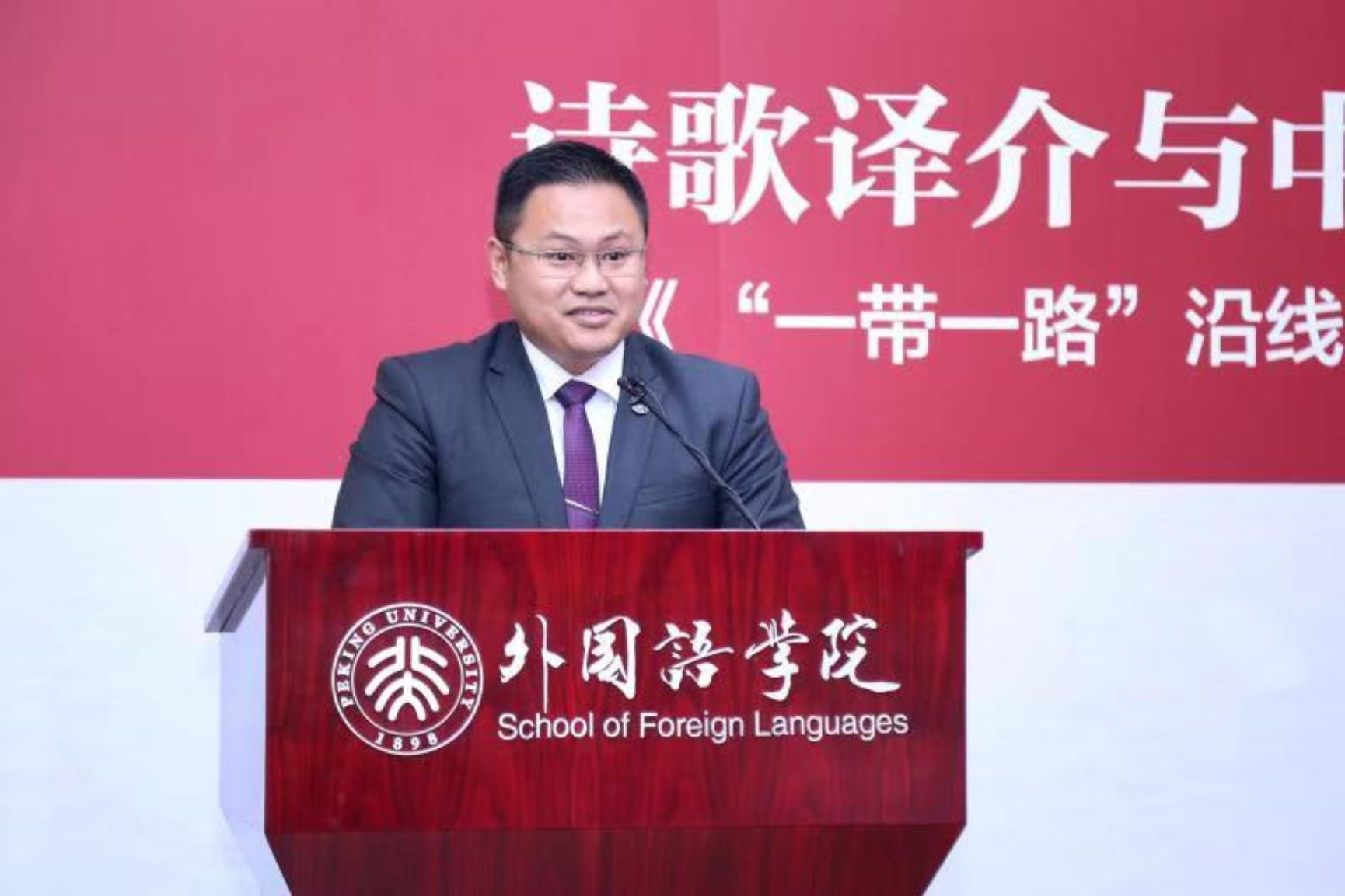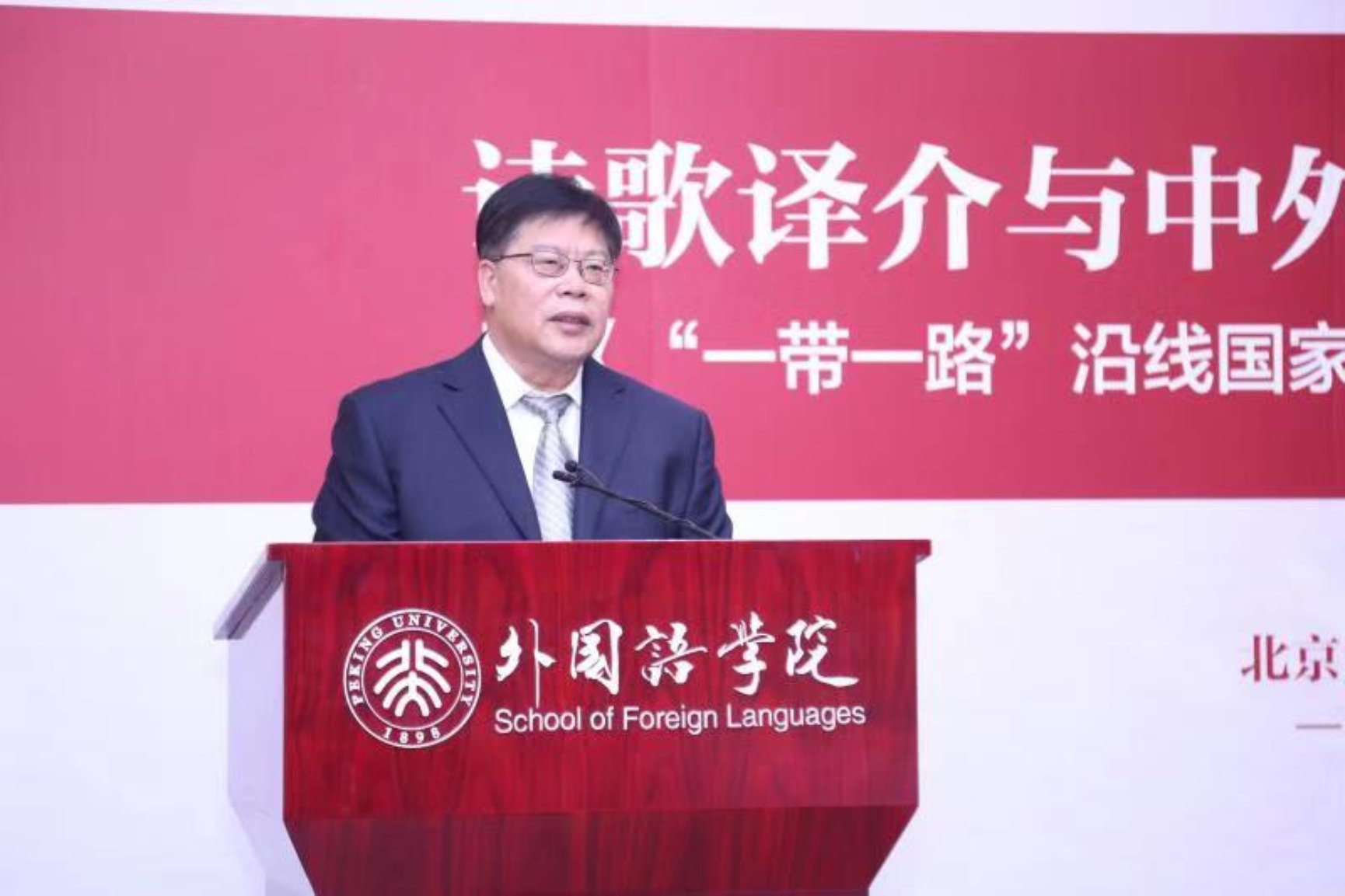 邱水平在致辞中向促成文库的编选、翻译、出版与发行的社会各界人士表达感谢,并介绍这一诗歌翻译项目的重要意义。他指出,该文库弥补了中国在外国诗歌研究方面的不足,填补了在“一带一路”部分沿线国家诗歌翻译与研究工作上的空白。对“一带一路”国家经典诗歌的翻译与研究,有助于更好地了解沿线国家的文学、文化和文明,助力“民心相通”,打造“文明之路”,推动国家间的相互理解、相互尊重,从而带动与“一带一路”沿线国家的深层次交流,有力地推动构建人类命运共同体。他强调,北京大学将继续加大外语学科的建设力度,在东西方文化交流、人文外交、文化产品传播等交叉领域确立新的学术突破点,同时鼓励外国语学院再接再厉,不断推出优秀成果,助力文明互鉴。