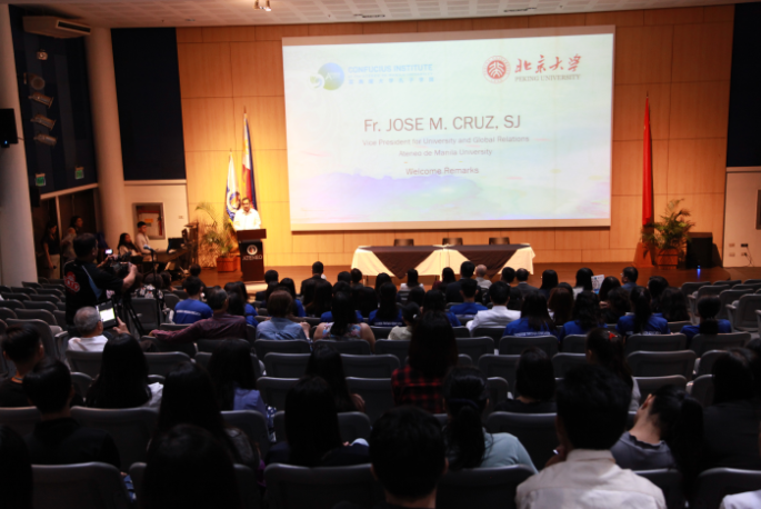 26日上午,出席开幕式的有亚典耀大学副校长Fr Jose M.Cruz神父、亚典耀大学孔子学院中方院长梁广寒博士、菲方院长Ellen H.Palanca (黄淑绣)博士、北京大学东方文学研究中心主任王邦维教授、外国语学院院长宁琦教授等学者、嘉宾、菲中友好人士和学生近百余人。