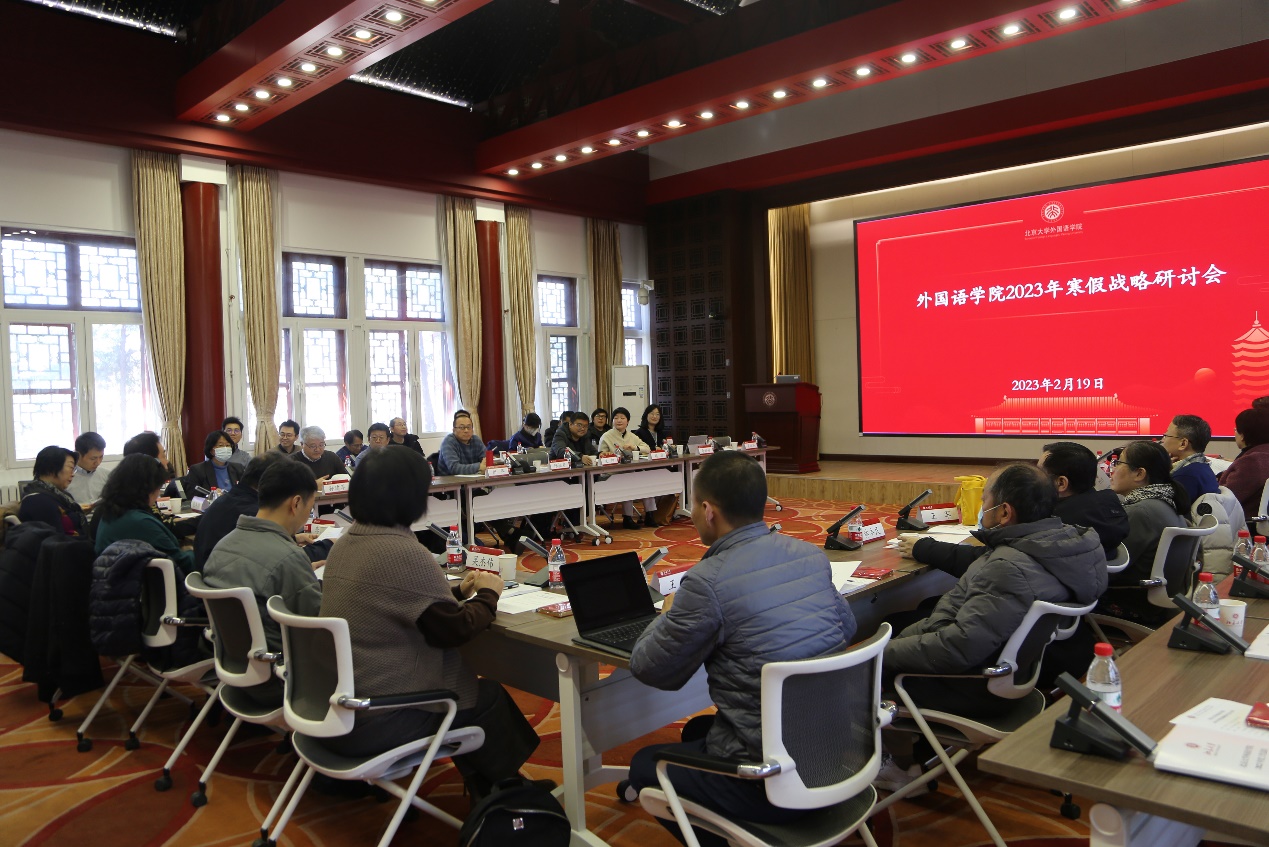 2023年2月19日,外国语学院2023年寒假战略研讨会在民主楼208多功能厅举行。学院党政班子、学术委员会、学位评定委员会学科分会、教学委员会全体成员,各系(所、中心)和行政科室负责人共计约50人参加研讨会。会议由院长陈明主持。