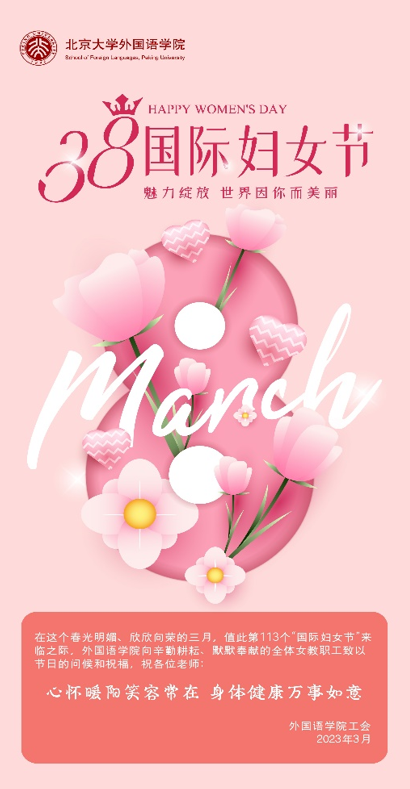 当日,外国语学院工会也为全体女教职工发送了电子贺卡,致以节日的问候和祝福。