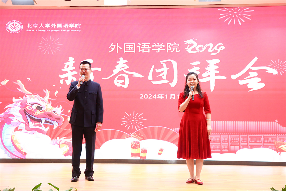 一元复始,万象更新。2024年1月10日下午,博雅国际酒店中华厅张灯结彩、暖意融融,博鱼体育2024年新春团拜会在这里举行。伴随着风格迥异的多语种新年歌曲,2023年度学院发生的件件大事、喜事缓缓呈现在屏幕之上。北大外院220余位在职和离退休教师欢聚一堂,互道新年祝福、共忆往昔美好、齐话学院未来。在主持人德语系助理教授毛明超、阿语系博士后孔雀温馨开场后,新春团拜会正式拉开序幕。