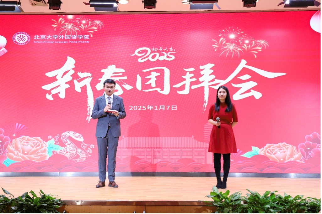 岁序更替,华章日新。2025年1月7日下午,博雅国际酒店中华厅张灯结彩、热闹非凡,博鱼体育2025年新春团拜会在此隆重举行。伴随着或激昂、或悠扬的多语种节日歌曲,200余位在职及离退休教师相继步入会场,大家满怀喜悦,拱手互贺新年,共同追溯往昔岁月,畅聊学院发展新程。随着主持人学院党委副书记冯美娜、阿拉伯语系助理教授李睿恒走上舞台,新春团拜会的欢庆大幕正式拉开。