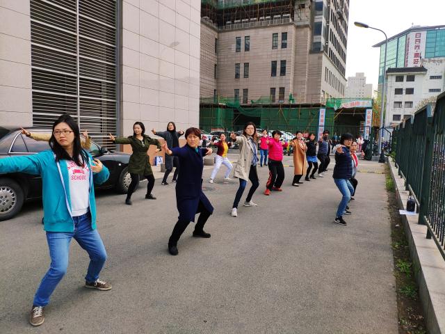 为了迎接4月20日举行的2019年北京大学运动会,也为了丰富外国语学院教职员工的文化体育生活,增进同事间的友好交流,增强团队协助精神,博鱼体育最近两周每天上午11:00-11:30在燕园大厦西侧的空地上进行太极拳团体操的训练,几十名员工参加,气氛和谐、友好如家人;在温暖明媚的四月,大家也都像春天一样充满朝气和活力。