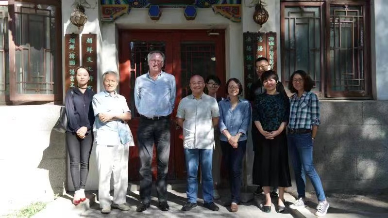 2017年德意志语言与文学科学院院长欧斯特康普教授(Prof. Dr. Ernst Osterkamp)在民主楼前与德语系师生合影