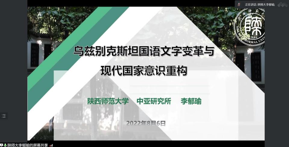 随后,李郁瑜老师从乌兹别克斯坦国语文字改革的角度切入作主题报告。李老师主要从事中亚研究,对乌兹别克斯坦的语言文字改革、教育文化政策等方面有着深入的了解。乌兹别克斯坦作为丝路枢纽上的重要国家,其民族语言文字变革逐渐彰显出重要性和研究前景。李老师从研究背景、国语文字现代化的四个路径和国语作为现代中亚国家意识形态的体现及其政治文化三方面进行详细介绍,提出了一些变革过程中值得关注的问题,引发了参会师生们的思考。