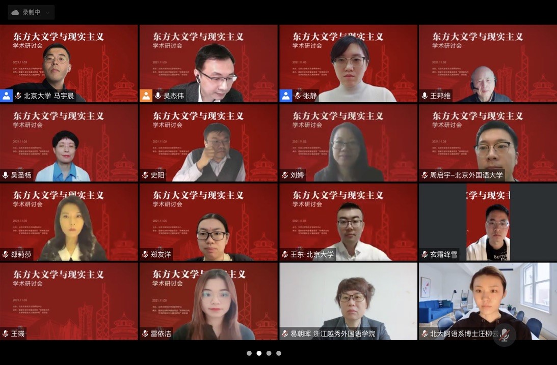 2021年11月5日,由教育部人文社科重点研究基地北京大学东方文学研究中心主办、国家社会科学基金项目“菲律宾当代文学的现实主义潮流研究”项目组承办的“东方大文学与现实主义”学术研讨会以线上会议的形式召开。本次研讨会以“在东方大文学中现实的形式、变迁与特点”为主题,邀请了来自15所国内高校与科研院所的30余位专家学者。
