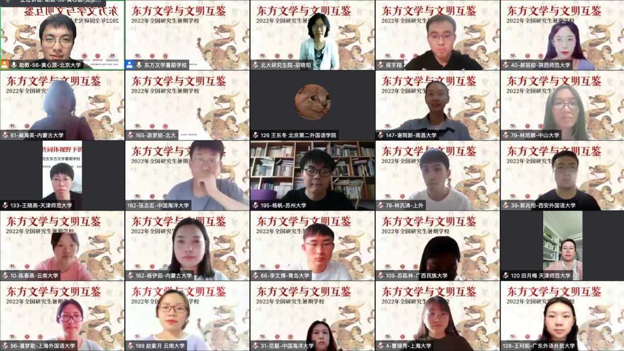 2022年6月27日上午11时,由教育部人文社科重点研究基地北京大学东方文学研究中心、博鱼体育、北京第二外国语学院联合主办的“东方文学与文明互鉴”2022年全国研究生东方文学暑期学校拉开序幕。来自国内外五十余所高校共计二百余名硕博研究生、青年教师齐聚云端,聚焦“东方文学与文明互鉴”。