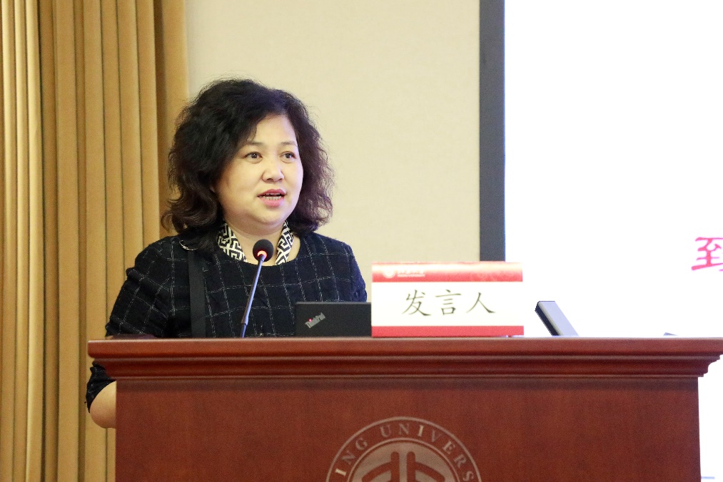 陈明教授代表赵宪章教授与责任编辑王松景女士向北京大学学生赠书
