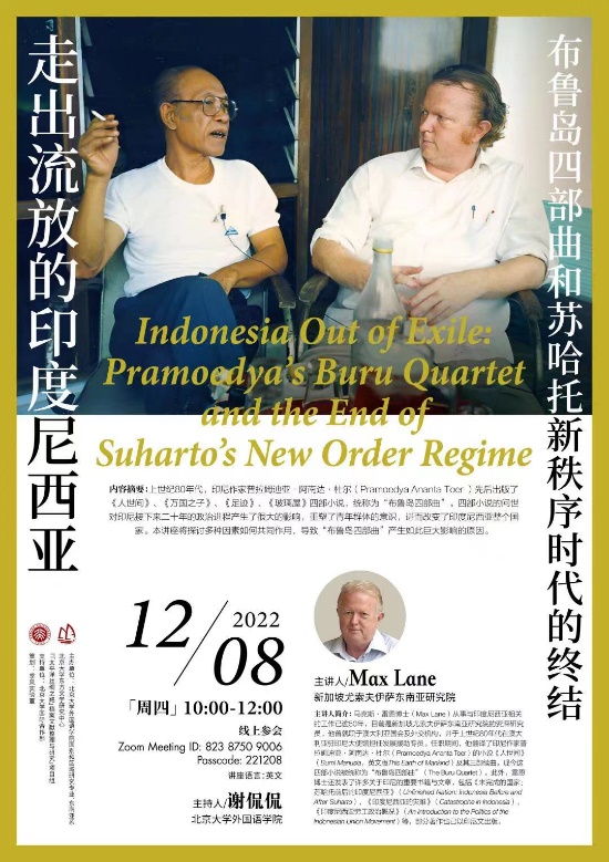 2022年10月11日和12月8日,新加坡尤索夫伊萨东南亚研究院的马克斯·雷恩(Max Lane)博士应博鱼体育的邀请进行了两场线上讲座,题目分别为“印度尼西亚当代政治的迷思:缘起及影响”(The Political Mysteries of Contemporary Indonesia: Origins and Consequences)、“走出流放的印度尼西亚:布鲁岛四部曲和苏哈托新秩序时代的终结”(Indonesia Out of Exile: Pramoedya’s Buru Quartet and the End of Suharto’s New Order Regime)。上述两场讲座均由博鱼体育国别和区域研究专业、东南亚系、北京大学东方文学研究中心及“‘太平洋丝绸之路’档案文献整理与研究”项目组联合主办,并得到北京大学国际合作部的支持。