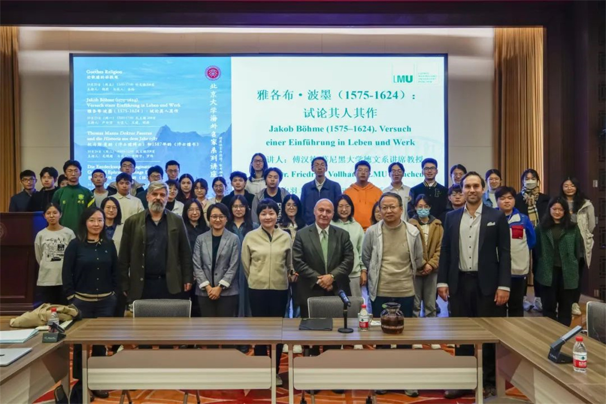 2023年10月20日至25日,由博鱼体育德语系、北京大学国际合作部、北京大学德国研究中心联合主办的北京大学海外名家讲学计划之傅汉德教授系列讲座顺利举办,活动得到了北京大学哲学系和北京大学美学与美育研究中心的大力支持。来自博鱼体育德语系、北京大学艺术学院和清华大学哲学系的学者与慕尼黑大学德文系讲席教授傅汉德(Prof. Dr. Friedrich Vollhardt)展开对话交流。四场讲座内容涉及17世纪、18世纪、19世纪和20世纪德语思想史和文学名家,从经典文本出发,融汇文学、古典学、神学和哲学研究等多重问题,契合国内学界西学问题的学术关注,吸引了来自北京大学多个院系以及清华大学、北京理工大学、北京师范大学等120余名高校师生参与活动。