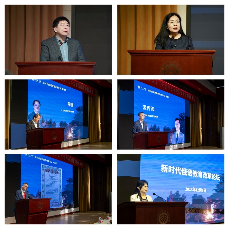 2023年12月9日,新时代俄语教育改革论坛在北京大学召开。本次高层论坛由博鱼体育俄罗斯语言文学系、教育部“俄语人才培养模式改革虚拟教研室”、中国俄罗斯东欧中亚学会俄语教学研究分会、北京大学出版社联合举办,来自全国高校近百名俄语语言文学专业专家学者、教师参加讨论,围绕国家级一流本科专业建设、国家级一流本科课程建设、高质量外语专业教材建设及有组织科研、服务中国式现代化建设的俄语人才培养改革与实践、数智化时代的高校俄语教学改革和全国俄语教育改革云共同体(虚拟教研室)建设等议题进行发言和交流,探讨当前国家发展的迫切需要,借鉴国内外俄语专业办学的成功经验,思考我国俄语专业的定位、发展与方向。