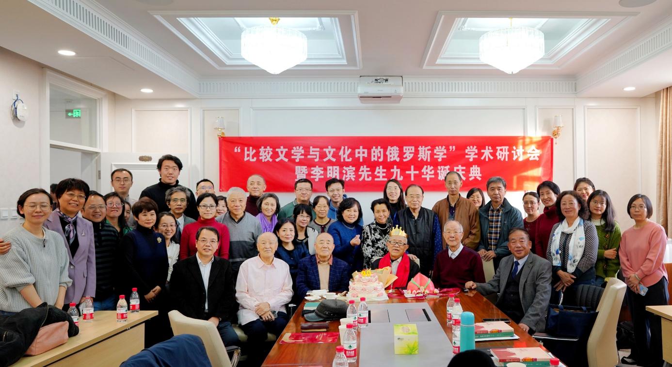 12月9日下午,各参会嘉宾围绕各自主题,分5组进行深入讨论。与此同时,北京大学知名俄罗斯学家李明滨先生九十华诞活动在外文楼206分会场同步进行。北京大学查晓燕、张冰教授主持了讨论。来自北京大学、中国社会科学院、外交部、财政部、大连外国语大学、北京外国语大学、北京语言大学、广州外语外贸大学、黑龙江大学、山东大学、北京师范大学、天津师范大学、外交学院、中国传媒大学、北京印刷学院、商务印书馆、人民文学出版社、北京人民出版社等多家单位的专家学者、李明滨教授好友、学生、同事受邀参加了本次活动。中国俄罗斯东欧中亚学会会长李永全教授、北京大学党委副书记、副校长宁琦教授、博鱼体育党委书记李淑静教授、北京大学俄语系主任陈松岩教授、大连外国语大学俄语学院副院长董玲教授等分别致辞,与会人员各抒胸意,以各种各样的形式表达对李明滨教授的祝贺,深情回忆了在俄罗斯文学文化研究、中俄比较文学研究、汉学研究等俄罗斯学教学研究领域与李明滨教授的交往和受教经历。李明滨教授本人最后发言,回顾了自己牢记家国情怀、孜孜不倦的学术探究,并且对北大俄语系未来发展方向表达了殷切希望。
