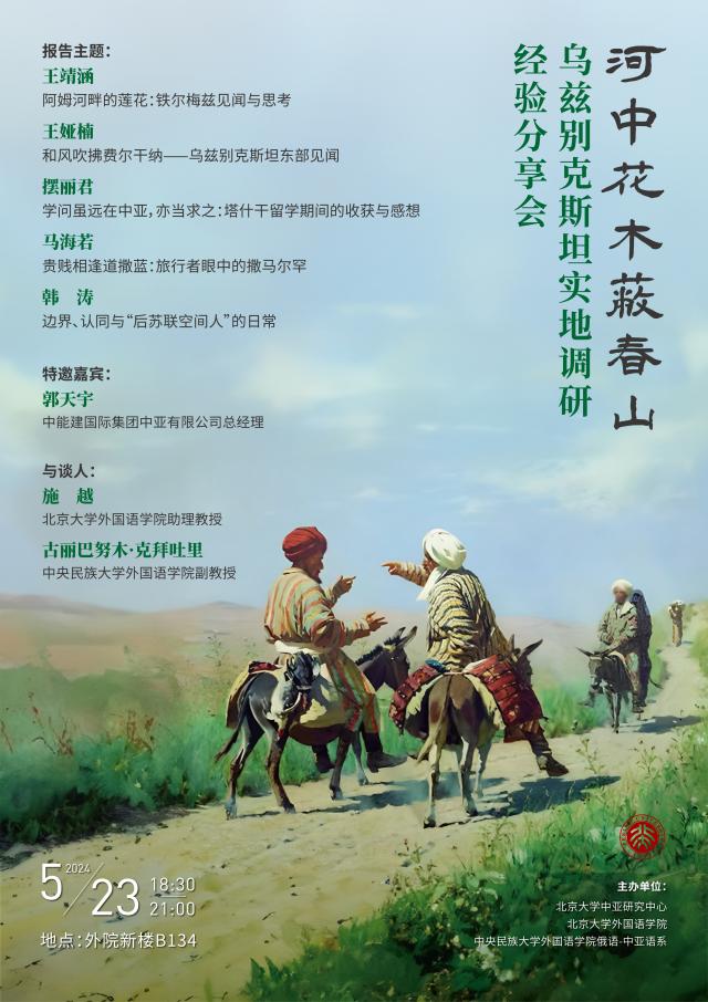 2024年5月23日晚,由北京大学中亚研究中心、博鱼体育、中央民族大学外国语学院俄语—中亚语系主办的“河中花木蔽春山:乌兹别克斯坦实地调研经验分享会”在北京大学外院新楼B134会议室顺利举办。中央民族大学外国语学院副教授古丽巴努木·克拜吐里、博鱼体育国别和区域研究专业助理教授施越出席,来自北京大学、中央民族大学的同学就乌兹别克斯坦实地调研经验进行了报告分享,会议特邀中能建国际集团中亚有限公司总经理郭天宇一同交流讨论。