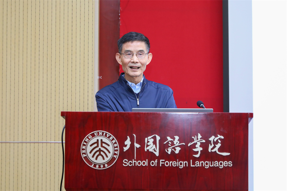 王丹院长首先致辞,强调了语言学学科在新文科和新质生产力背景下的机遇与挑战。她指出,近年来,人工智能等数字技术的发展,给外国语言文学学科带来了前所未有的冲击,单一学科已经难以应对我们所面临的挑战,如何将挑战变为机遇,将人工智能技术与计算方法用于语言学理论和实践,如何发展新文科视角下的科研创新,成为当今外国语言学学界亟待讨论和解决的问题。作为承担人才培养重任的高校外国语言文学学科,如何培养跨学科复合型人才成为时代赋予高校外语教育的重要任务与时代课题。在这样的时代背景下,语言所审时度势,顺势而为,从两年前开始,在跨学科人才培养方面进行了有益的尝试,相继开设具有跨学科性质的本科生培养项目并取得了一定的成效。今天,我们齐聚一堂,一起探讨语言学学科的发展和跨学科人才培养这一主题,可以说正当其时,适逢其势。这不仅是一次学术探讨的良机,也定能为外国语言学及应用语言学学科的发展注入新的活力。王丹院长欢迎各位专家的到来,指出,本次研讨会汇集了语言所、北京兄弟院校不同研究方向的精英学者,既有北大外国语学院第一位开设语言学课程的前辈学者,也有在国内创建第一个语言学系的北京语言大学语言学系创系主任,也有国内计算语言学领域、认知语言研究领域的领军学者,外语教育和跨文化研究领域的前沿学者。王丹院长希望大家能畅所欲言,分享经验和观点,凝聚思想与共识,共同形成合力,应对AI时代的挑战,共同推动外国语言学学科的建设与发展。