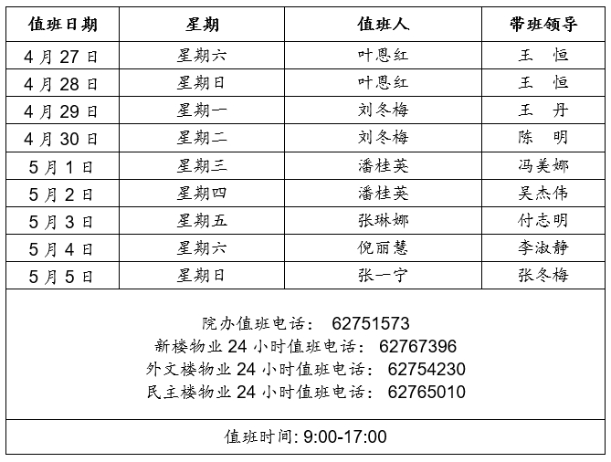 2024年劳动节假期外国语学院带值班表