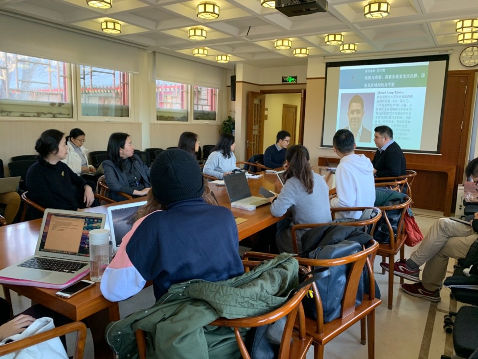 2019年12月10日,新加坡国立大学亚洲研究所(ARI)副主任、东南亚史学家Maitrii Aung-Thwin教授到北京大学进行学术访问。当天上午,Aung-Thwin教授与外国语学院东南亚系师生进行座谈,了解了我院东南亚研究相关学科的建设状况,并就语言学习,区域与国别研究在东南亚的发展等问题与外院师生进行了深入的交流。东南亚系教师杨国影、郄莉莎、张哲、谢侃侃及相关专业的硕博研究生参与了本次座谈。