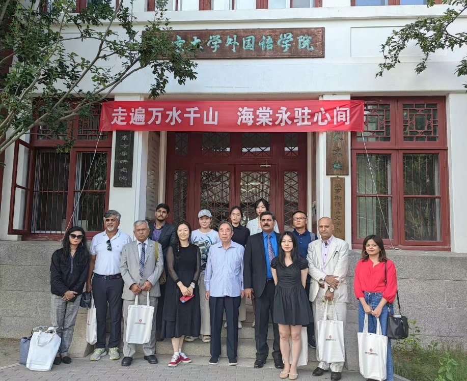 访问团抵达北京大学后,先后参观了未名湖、博雅塔以及北京大学巴基斯坦研究中心、外文楼乌尔都语教研室等,最后来到外文楼111会议室与乌尔都语专业师生座谈。北京大学巴基斯坦研究中心主任唐孟生教授、外国语学院南亚学系乌尔都语专业张嘉妹副教授出席座谈会,3名本科生代表唐赛香、胡婷婷、岑偲仪等参加会议,会议由张嘉妹老师主持。