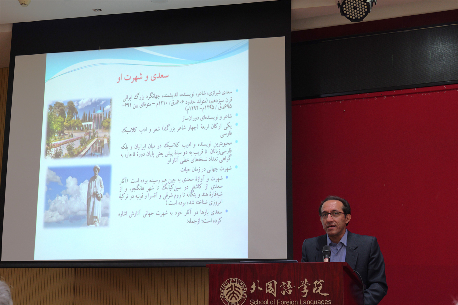 2023年10月20日下午,博鱼体育“东方大文学”系列讲座第十五讲“萨迪作品中的中国形象与中国文化中的萨迪作品”在外国语学院新楼501会议室举办。本次讲座由博鱼体育西亚系波斯语言文化教研室、北京大学东方文学研究中心联合主办,主讲人为伊朗阿拉梅·塔巴塔巴伊大学波斯语言文学系副教授、中国研究中心主任穆罕默德阿米尔·贾拉利博士。伊朗-中国友好协会秘书长阿里穆罕默德·萨贝基先生、波斯语言文化教研室师生出席本次讲座。