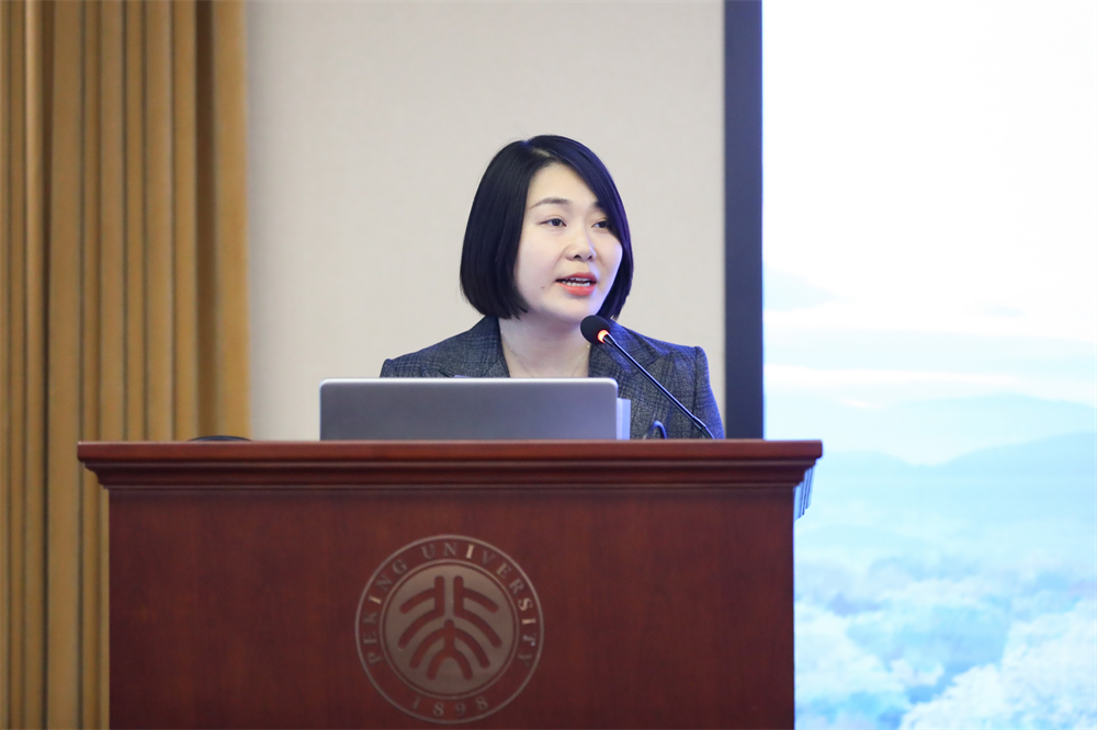 北京大学南亚学系教师代表、副教授张幸发表讲话。她先用孟加拉语对来自泰戈尔家乡的印度代表团表示欢迎,接着就北京大学南亚学系的泰戈尔研究和孟加拉语教学研究进行了介绍。她指出,印度语言文学专业长期开设的泰戈尔研究课程内容覆盖面广,涉及作品外的延伸研究。2004年开设孟加拉语课程也是为了更好开展包括泰戈尔研究在内的印度文学文化及南亚学相关研究。最后,她提及泰戈尔在中国数次以文明为主题的演讲,传递了对中印人民在同属东方文明的理解下加强人文交流的希冀。