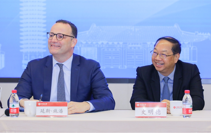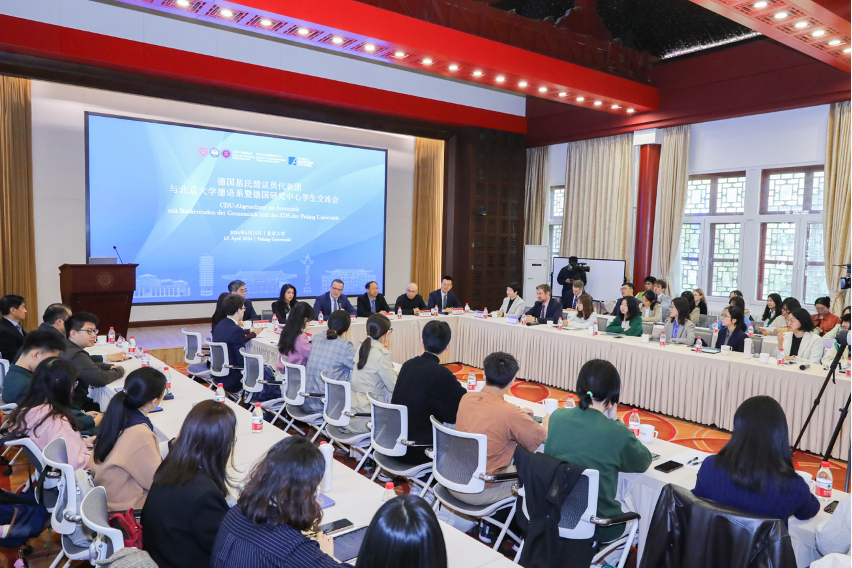 2024年4月15日,德国联邦议会议员、基民盟-基社盟议会党团副主席、联邦卫生部原部长延斯·施潘(Jens Spahn),联邦议会议员居乐(Serap Güler)率德国联邦议会基民盟议员代表团访问北京大学。北京大学党委书记、校务委员会主任郝平,校长、中国科学院院士龚旗煌分别会见代表团一行。中国德国友好协会会长、中国驻德前大使史明德,中国人民对外友好协会欧亚部副主任吕宏伟等陪同代表团来访,北京大学党委常委、副校长方方,博鱼体育党委书记李淑静等陪同会见。博鱼体育德语系、北京大学德国研究中心组织近四十名来自各个年级的优秀学生代表,与施潘一行交流座谈。德国研究中心主任黄燎宇、德语系主任胡蔚参与交流活动。活动由德语系副主任毛明超主持。