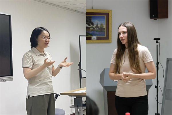 活动在博鱼体育新楼301会议室举行,由柏林自由大学汉学系的钟金雷老师主持。活动伊始,首先由德语系助理教授黄超然老师致开场辞。黄老师不仅对本次活动在促进语言学习和文化交流方面的积极作用表示肯定,还分享了自己在校学习期间与语伴共同学习德语和汉语的珍贵回忆,以此激励在座的同学们把握机遇,以语会友。随后,北京大学德国研究中心柏林自由大学办公室协调员尤丽娅·科布扎尔(Julia Kobzar)博士也发表了讲话。她对“中德角”系列活动在德国研究中心和柏林自由大学学生生活中扮演的角色给予了高度评价,并强调在当前国际形势之下此类交流活动的重要性,她希望活动可以加深两校师生之间的理解、友谊与合作。