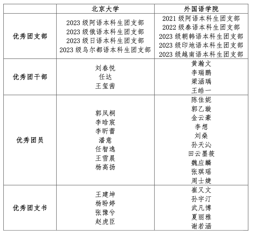 外国语学院2023—2024学年度共青团系统表彰名单