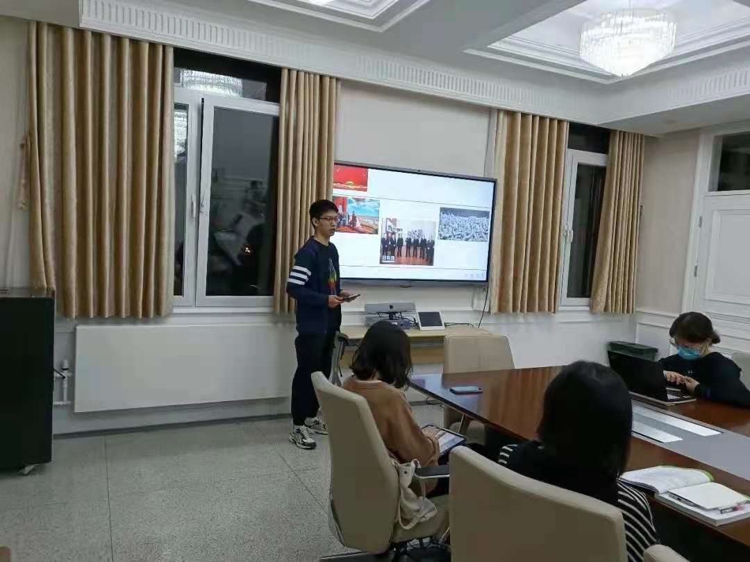 41日晚,外国语学院团委骨干齐聚外文楼,开展首场骨干讲党史党史学习教育,活动由团委书记卢敏老师主持。团委学生副书记18级俄语系张浩然同学从习总书记的两篇文章入手,结合自身的经历以及读书感悟,给大家上了一堂简短但精彩的党课。