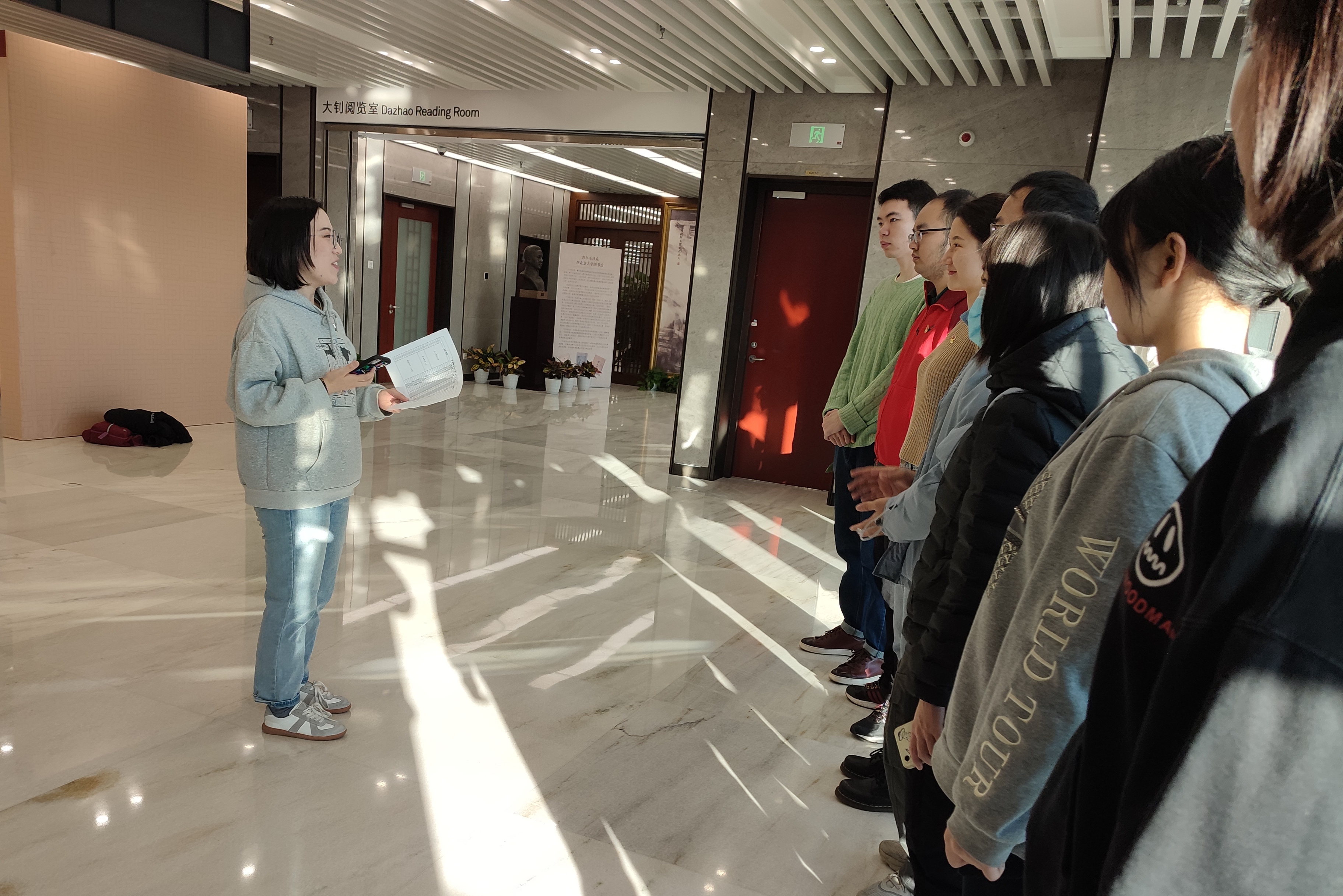 2021年12月7日,外国语学院英语翻译硕士生党支部组织开展了“百年前北京大学学术系列展·1921”集体观展活动。上午9时,党支部的同学齐聚北京大学图书馆东楼四层大钊阅览室,开展此次主题党日活动。
