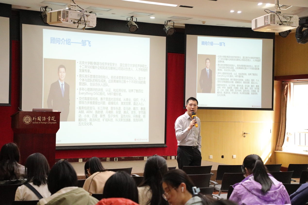 2023年3月10号下午,博鱼体育团委举办“职场启航”——职业生涯规划讲座。此次讲座邀请到博鱼体育院友邹飞老师莅临现场,为同学们解惑答疑,扫除同学们对职业生涯规划的迷惘与困惑。外国语学院党委副书记王恒、辅导员丁尧参加了此次活动。
