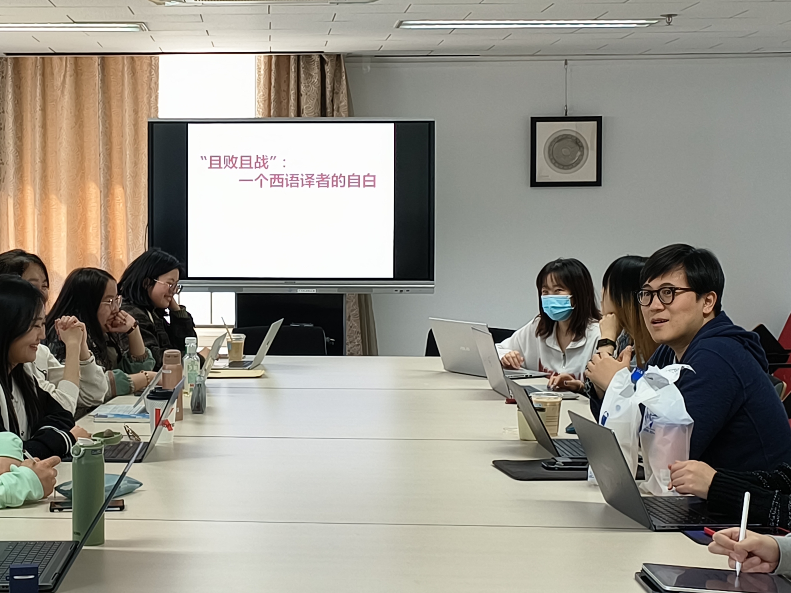 3月12日下午,由博鱼体育团委主办的以“且败且战:我的学译点滴”为主题的圆桌谈活动在外院新楼201室成功举办。本次活动主讲人为博鱼体育西葡意语系主任范晔老师。学院团委副书记杜姝格和20名同学参加活动。本次活动由西班牙语系2022级本科生任达主持。