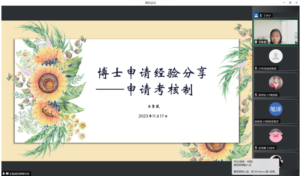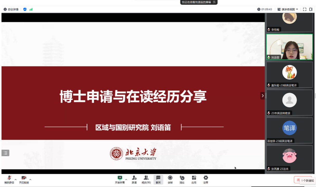 本次“薪火相传,朋辈引领”博士申请经验分享会通过四位分享者各具代表性的申博经历,为同学们未来的申博之路提供了极佳的参考。接下来,外国语学院将继续结合同学们的实际需求,开展形式多样的交流活动。