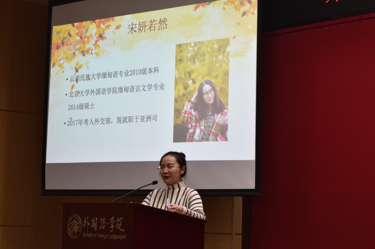 随后,团委书记王艳超、亚非系系主任魏丽明教授以及研究生会就业部部长王静妍向外国语学院“心手计划”朋辈引航导师颁发聘书并合影留念。首届外国语学院“心手计划”朋辈引航导师团共设7名,分别是:09届东南亚文化硕士毕业生、创新地图公司副总裁赵嵩;17届东南亚文化硕士毕业生、就职于字节跳动公司的马宇晨;17届东南亚文化硕士、任职于外交部的宋妍若然;15届英语翻译硕士、就职于中国工商银行总部的白艺茹; 16届日语翻译硕士、任职于中国银行总部的王晗;16届日语翻译硕士、就职于安永会计事务所的段愿;16届英语翻译硕士、就职于北京十一学校的唐梦莲。