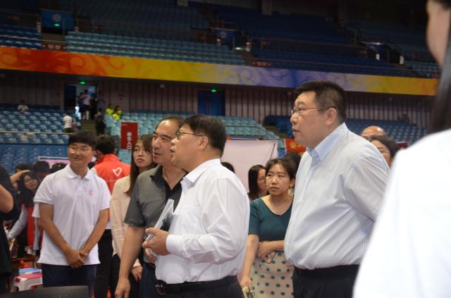 邱水平书记一行在外院迎新展位前驻足