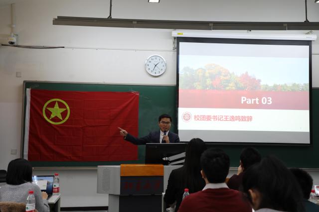 12月6日下午,2019-2020年外国语学院团校开学典礼暨开学第一课在二教505教室隆重举行。外国语学院党委书记李淑静、校团委书记王逸鸣、马克思主义学院副院长宋朝龙、外国语学院党委副书记王恒、外国语学院团委副书记李佳盈及全体外院团校学员出席典礼。活动由院团委书记卢敏主持。