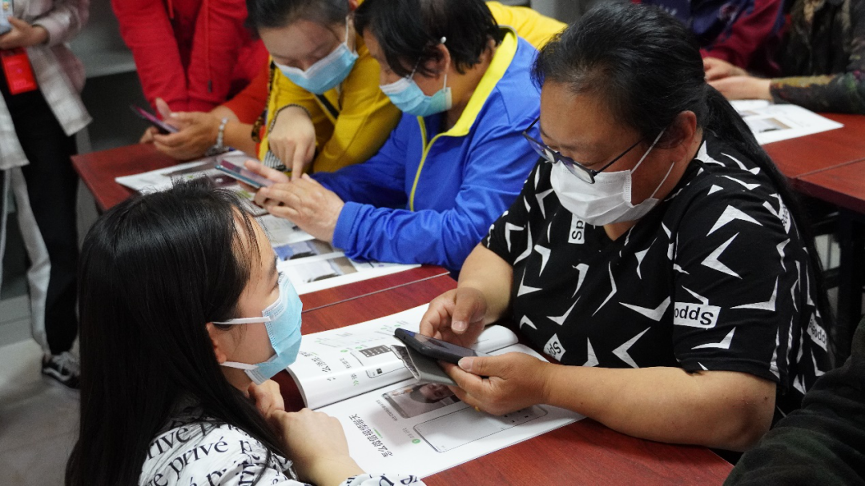 活动开始后,大家各自找到了自己的“学员”,从进入界面开始教学微信调整字体、发送图片、视频通话等功能。同学们惊讶地发现长辈们都非常好学,对于每一个细节都要“较真”,准备的问题解决完了他们还时不时提出新的问题。经过同学们细致的教学和辅导,他们已经熟练掌握了微信的使用方法,并且积极地向大家展示。