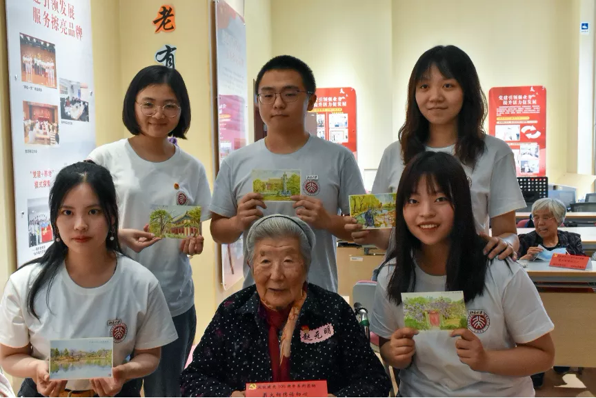 听完了三位老人的分享,同学们加深了对中国共产党和优秀党员的认识,心中感慨万千,对三位老人更是倍感敬佩。大家纷纷拿出写满了真诚寄语、精心准备的北大明信片赠与老人,表达对他们的敬爱之情。通过聆听党员前辈们的经验和故事,我们看到了更多书本文字之外的东西。坐在我们面前、和蔼健谈的老人们,以他们鲜活生动的亲身经历和发自肺腑的革命热情,让我们在精神上受到了极大的感染,从而以更加坚定的信念追随党组织,并决心通过自身行动,积极践行诸位老党员们对我们的期许和教诲。
