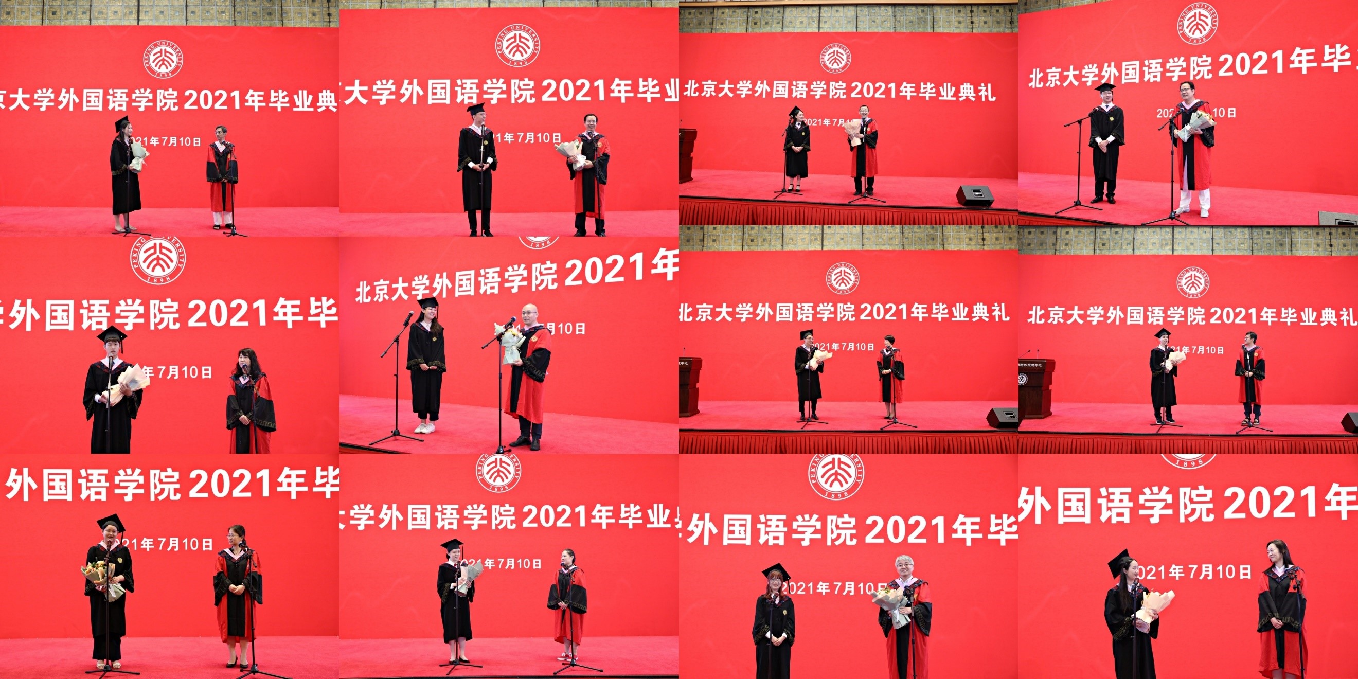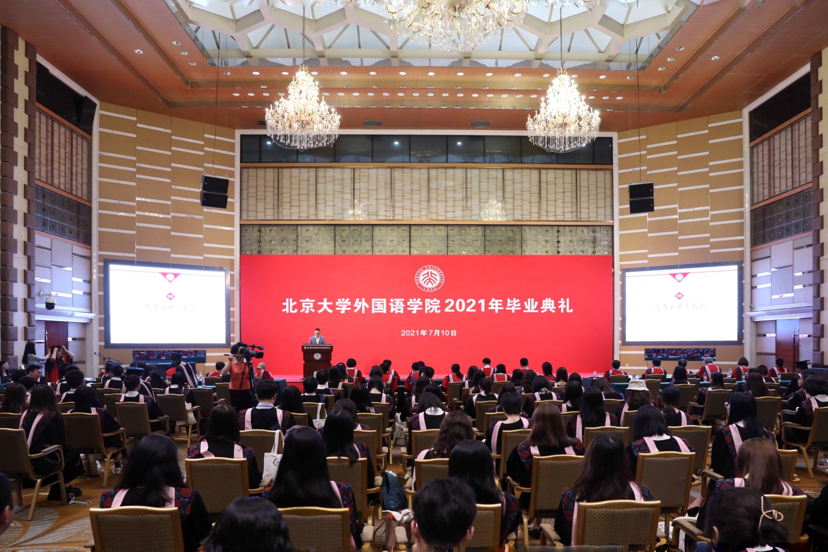 7月10日上午,博鱼体育2021年“致敬青春,拥抱时代”主题毕业典礼在英杰交流中心阳光厅隆重举行。院长宁琦,院党委书记李淑静,副院长付志明、吴杰伟、王丹,院党委副书记宋扬出席典礼。参加典礼的还有阿拉伯语系系主任林丰民、教师代表廉超群,朝(韩)语系副系主任李婷婷、教师代表文丽华、琴知雅,德语系系主任黄燎宇、教师代表谷裕,东南亚系系主任史阳、教师代表林琼、杨国影、黄轶、咸蔓雪、万悦容,俄语系系主任陈松岩、教师代表陈思红,法语系系主任董强,南亚系系主任陈明、教师代表姜永红、张嘉妹,日语系系主任孙建军、副系主任丁莉、教师代表马小兵、王灿娟、岳远坤,西葡语系系主任范晔、教师代表郑楠,西亚系副系主任刘英军、教师代表陈飞,亚非系教师代表程莹,英语系系主任高峰枫、教师代表纳海,语言所主任高一虹、教师代表郑萱,世文所副主任程小牧,MTI教育中心主任林庆新,学院教务办公室与学生工作办公室老师。老师们与学院2021届全体毕业生,共度毕业难忘时刻。典礼由院党委副书记王恒主持。