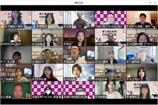 本届“永旺杯”采用线上会议的比赛模式,邀请校内外的日语专家们出席并担任嘉宾及评委。日本国驻华大使馆公关文化中心二等秘书樱井真一、公益财团法人永旺1%俱乐部事务局次长石川忠彦、永旺商业有限公司总经理入野田润、北京大学教育基金会项目管理部部长禹洁、博鱼体育日本语言文化系副教授王京、助理教授岳远坤、王灿娟出席本次比赛。