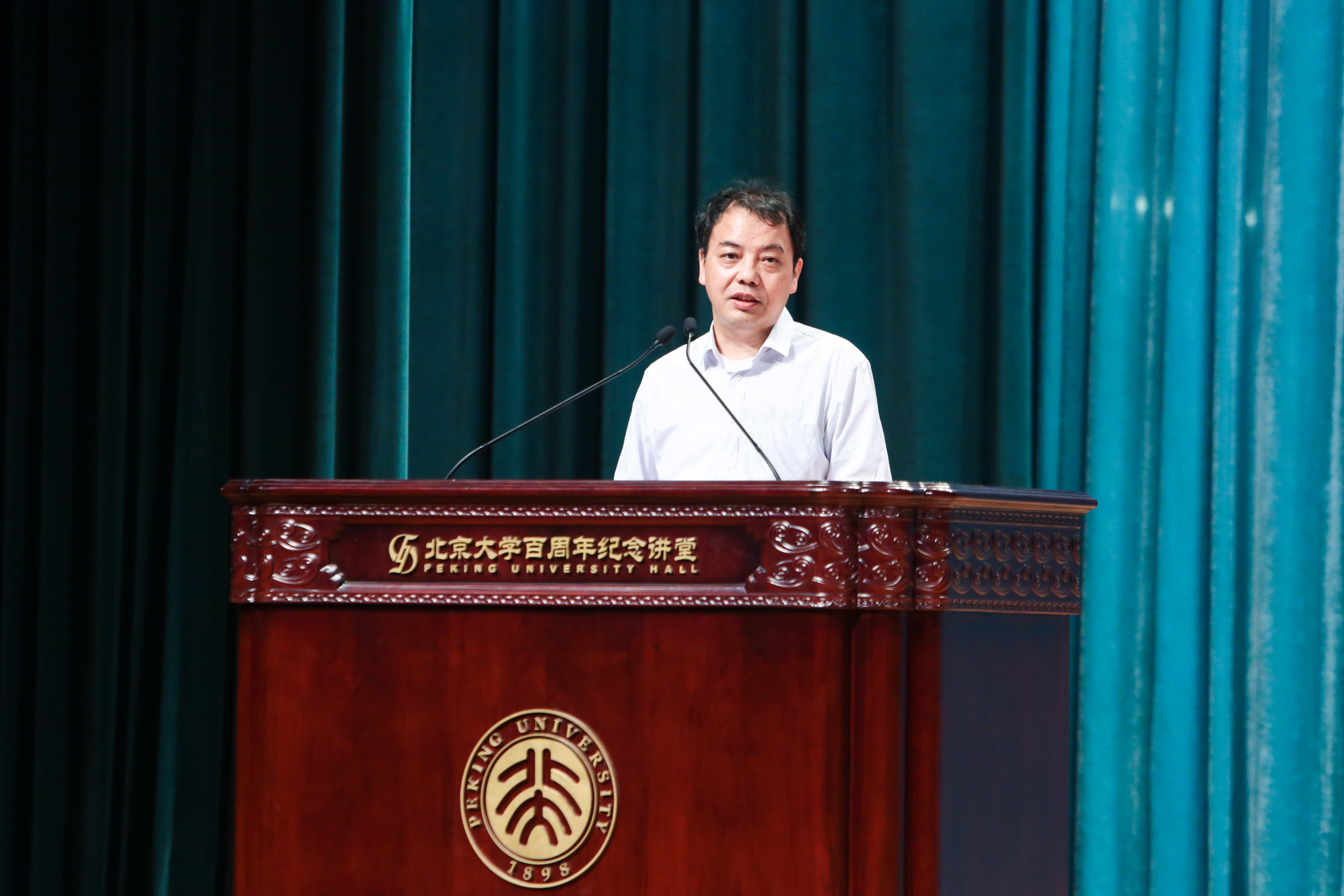 第一,志当存高远,中流自在心。鲁迅先生在《我观北大》一文中“北大是常为新的”一句的后面,接着说“改进的运动的先锋,要使中国向着好的,往上的道路走。”百余年来,一代代北大人始终作为时代的先锋,勇立潮头,为民族和国家的未来、为党和人民的事业不断求索,贡献卓越。爱国情、报国志,这就是历代北大人的使命。“世界在我脚下,祖国在我心中”,这是外国语学院的院训。立足中国,关注亚洲,放眼全球,是外院人的基点。当今世界正经历百年未有之大变局,国际形势风云变幻,经济全球化遭遇逆流,新冠疫情的挑战依然艰巨,此时此刻,作为北大的新人,会不断面临时代的拷问,也始终需要自己在挑战中披荆斩棘,去开辟出通向未来的光明坦途。各位同学,“未名湖是个海洋,诗人都藏在水底”,北大一入深如海呀!在此海洋中,你不再是无不足道的一滴水,而是惊涛拍岸的一股劲。你贴上了北大人的标签,你的一言一行就要在“北京大学”这四个字的光照之下。你不仅要进行“淡泊以明志、宁静以致远”的个人修炼;还要有“海纳百川,有容乃大;壁立千仞,无欲则刚”的宽广胸襟;更要有“取法乎上,追求卓越”的全球眼光。惟其如此,才能秉承北大的红色传统,将自己融入祖国发展的时代潮流之中;才能有践行“天下兴亡,匹夫有责”的机会;才能做中流砥柱,在祖国遭受“卡脖子”的时候,能拔剑而起,就犹如那侠之大者“一剑光寒十九州”的风姿。心中有国,“虽千万人吾往矣”;心中无国,则人生之途必行而不远。因此,如何交上一份无愧于时代的答卷,这是在座(或在线)的每一位同学需要思考和明确的首要问题。