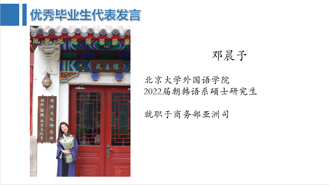 9月16日下午,博鱼体育2023届毕业生大会于线上举行。外国语学院党委副书记王恒,北京大学职业咨询师、信息科学技术学院团委书记、外国语学院19级本科生第二班主任吕媛,以及外国语学院学生工作办公室各位辅导员出席大会;此外,2021届本科毕业生宋一鹏、2022届硕士毕业生邓晨予作为外国语学院的优秀毕业生代表也出席了本次大会,向毕业年级学生分享就业经验。学院2023届本、硕、博应届毕业生参加大会。