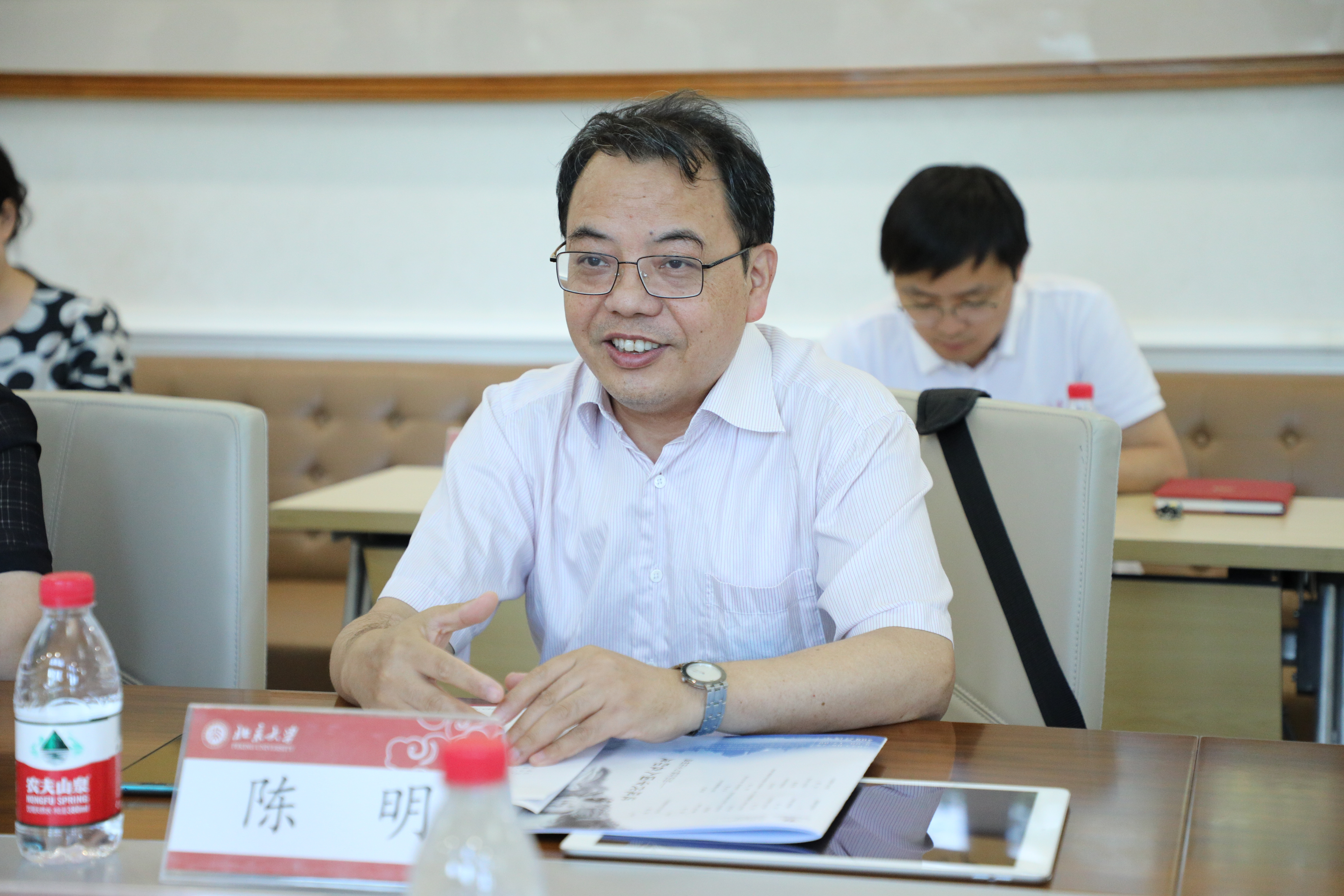 随后,院长陈明致欢迎辞,并介绍了外国语学院的合作意向。陈明院长引用习近平总书记在文化传承发展座谈会上总结提炼出的中华文明五个突出特性:连续性、创新性、统一性、包容性、和平性。陈明院长提出侨博和外院的合作对思政实践、学科建设、文化建设、国别区域研究等都有深刻的意义,进而促进中华文化在海外的传播以及传统文化的传承。同时指出双方合作的宗旨不仅是双赢更是多赢,要利用双方的优势发挥更大的社会价值。