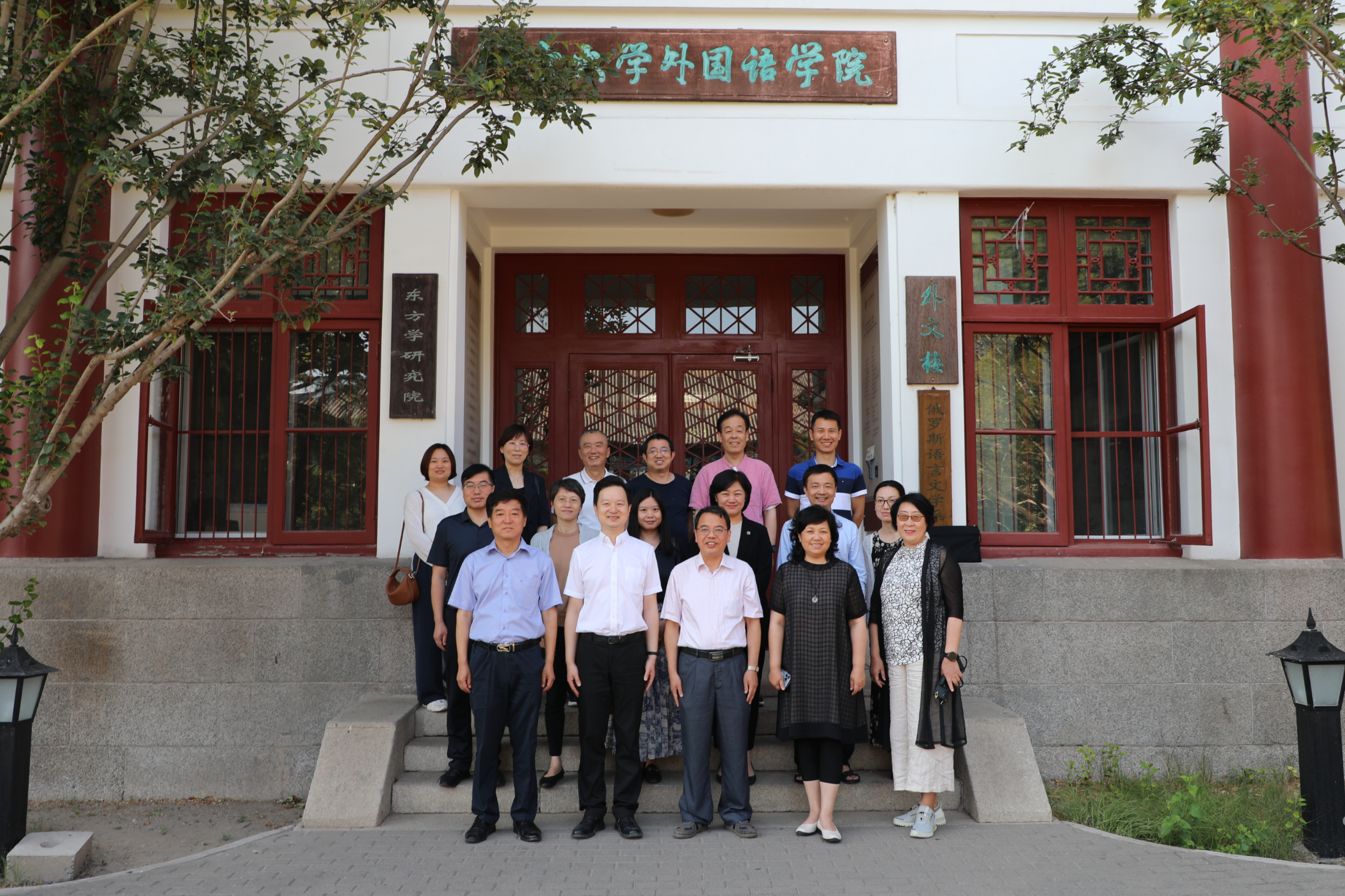 双方在外文楼前合影留念
