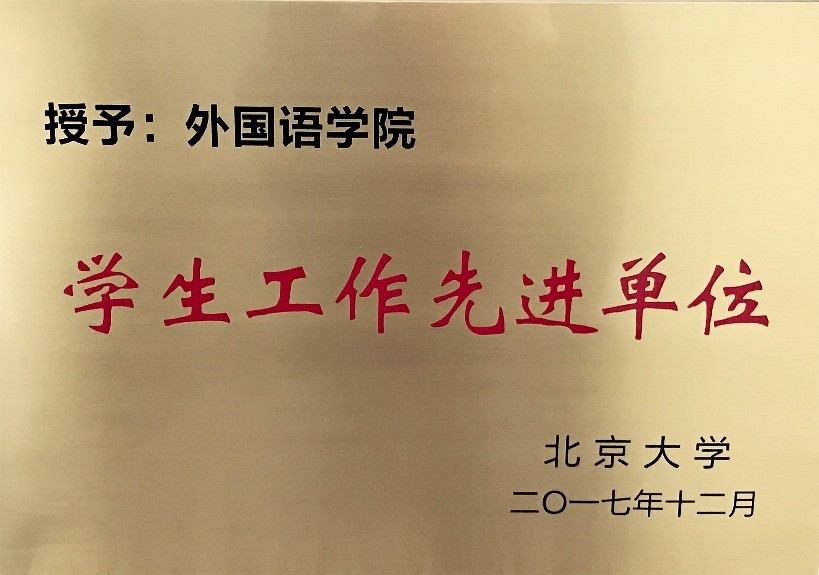 近日,外国语学院被授予北京大学“学生工作先进单位”称号、共青团博鱼体育委员会被授予北京大学“红旗团委”称号。