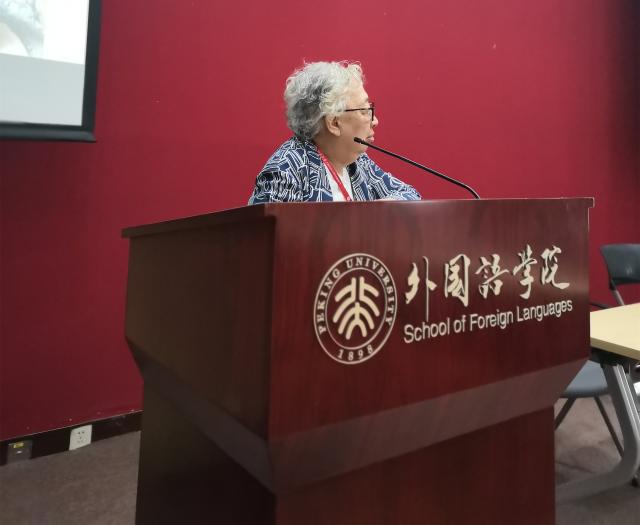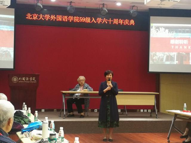 庆典由德语系系友汪葆卿女士主持,博鱼体育党委书记李淑静出席了本次庆祝活动。李老师首先欢迎近四十位八十高寿的英德法三专业系友到来,还为校友介绍了北大外院的历史与现状。李老师也是英语系系友,是老西语系招收的最后一届英语专业本科生,因此今天的聚会对她本人也意义非同寻常——不仅见到了曾经的英语系老师,也重逢了她的二外德语老师。李老师通过PPT为院友们展示了外院近年来取得的骄人成绩。院友们对外院在立德树人和教学科研方面取得的成就深表赞赏。