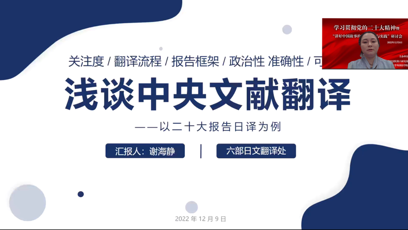 中央党史和文献研究院第六研究部与博鱼体育联合举办学习贯彻党的二十大精神暨“讲好中国故事的翻译理论与实践”研讨会