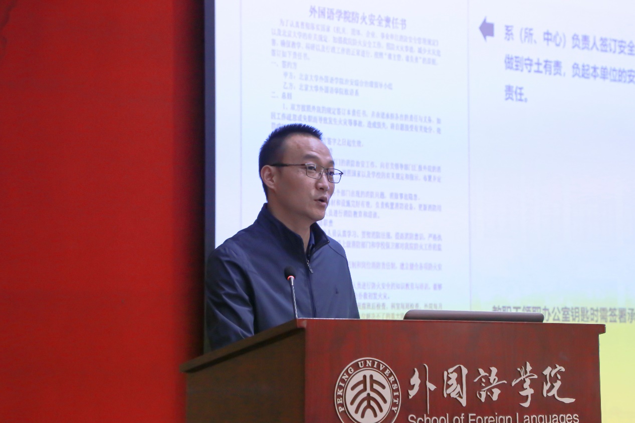 副院长王恒作学院安全管理、物业后勤服务、信息化建设、继续教育、外事相关工作汇报。学院重视安全管理工作,在基础设施、网络空间、保密工作等重要领域为教学科研保驾护航,连续五年获评“北京大学网络安全先进单位”。服务国家战略,开展委托外语能力测试、委托外语能力培训等工作,开设国别区域研究高层次人才培养项目,服务汉语推广和国际交流。国家移民管理机构小语种人才培训班(第2期)获得2023年度北京大学继续教育精品项目奖。在外籍专家聘用及访问方面加强制度建设,改革聘任方式。立足外语专长,服务北大国际交流大局,助力提升中国学者学术影响力。